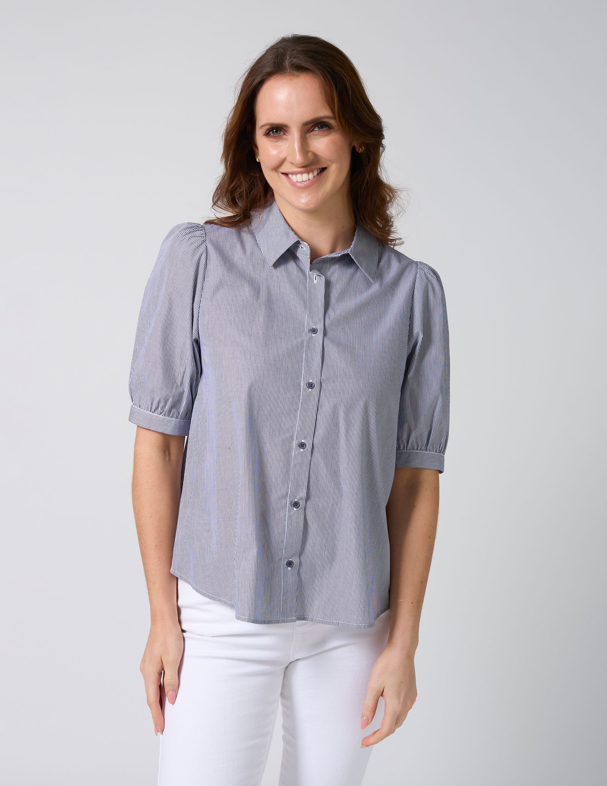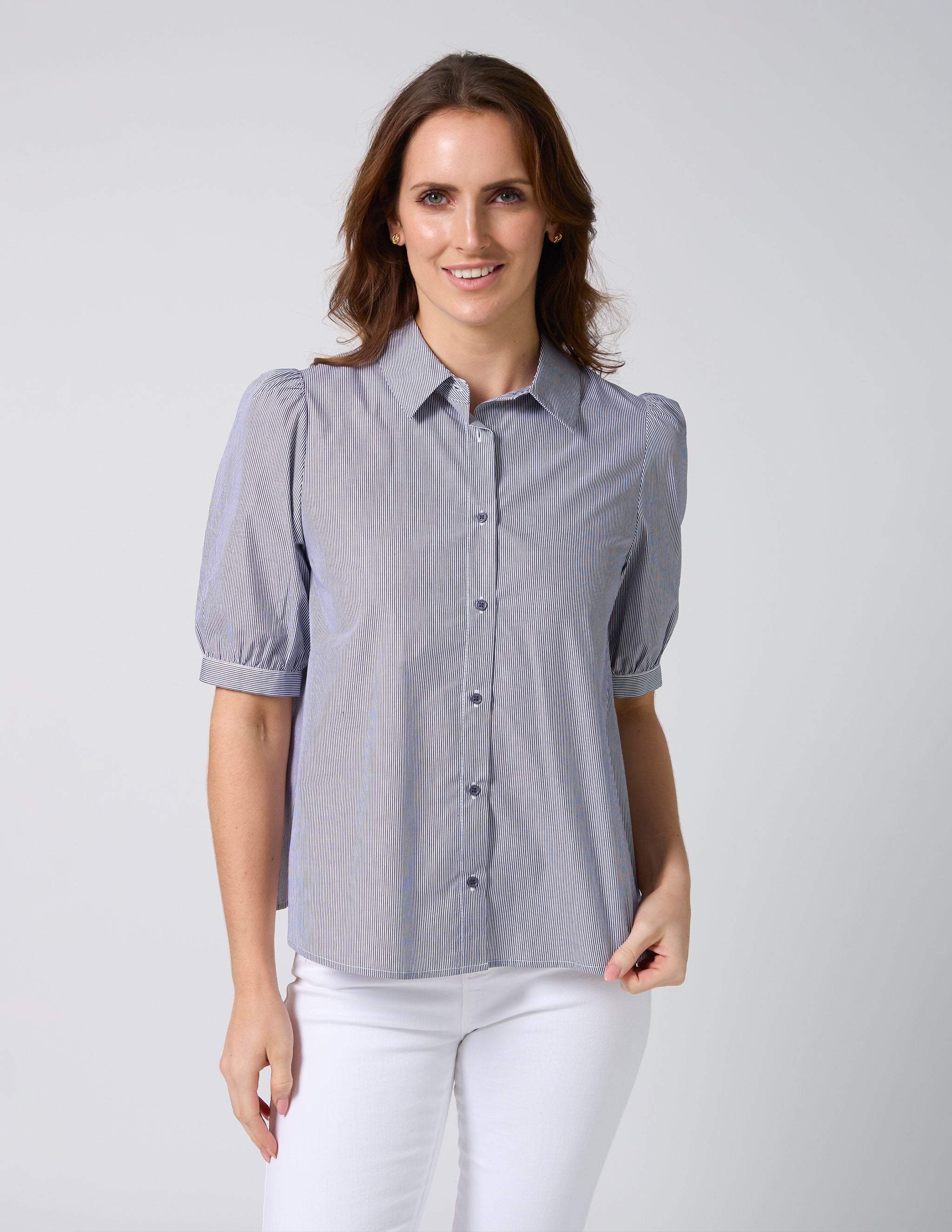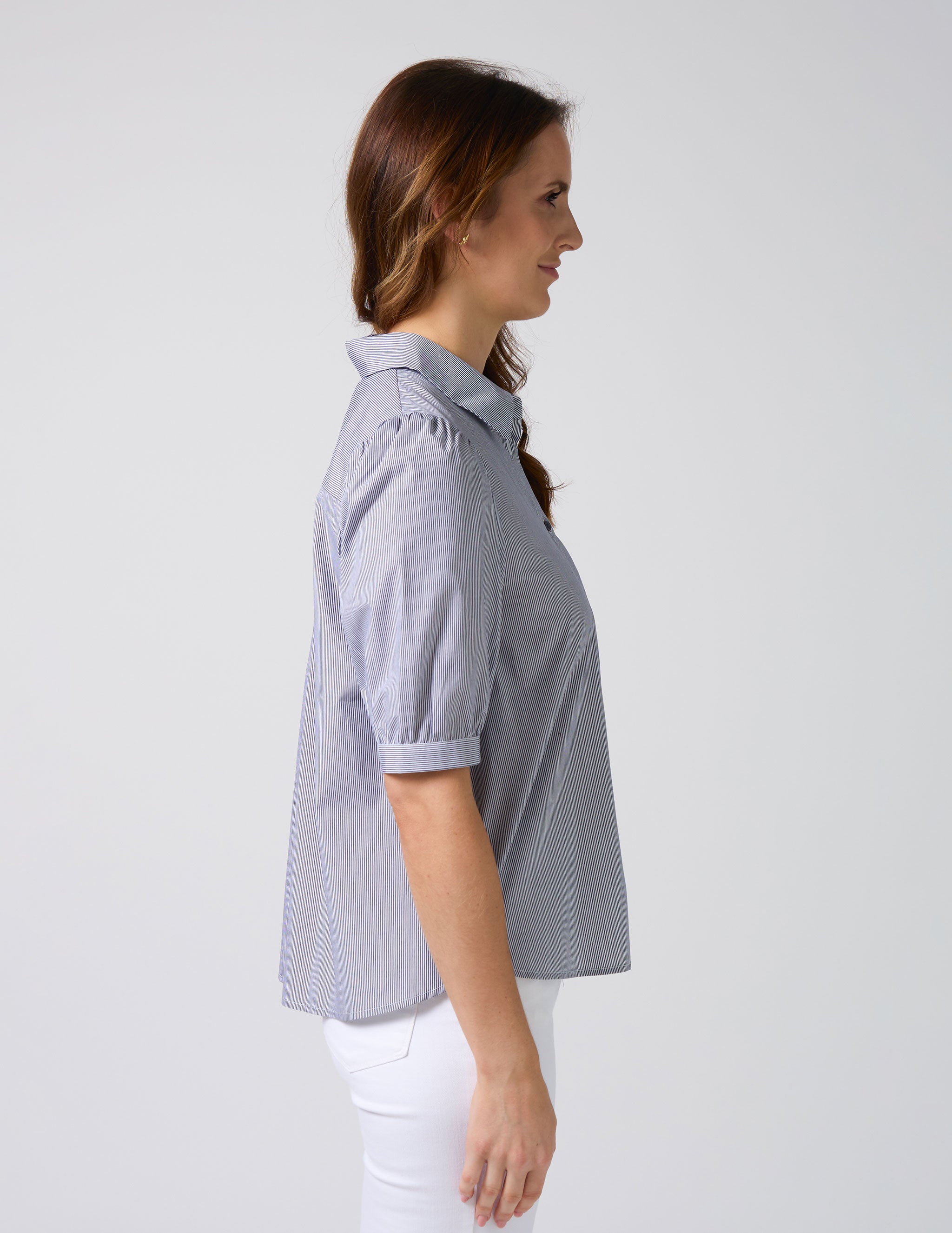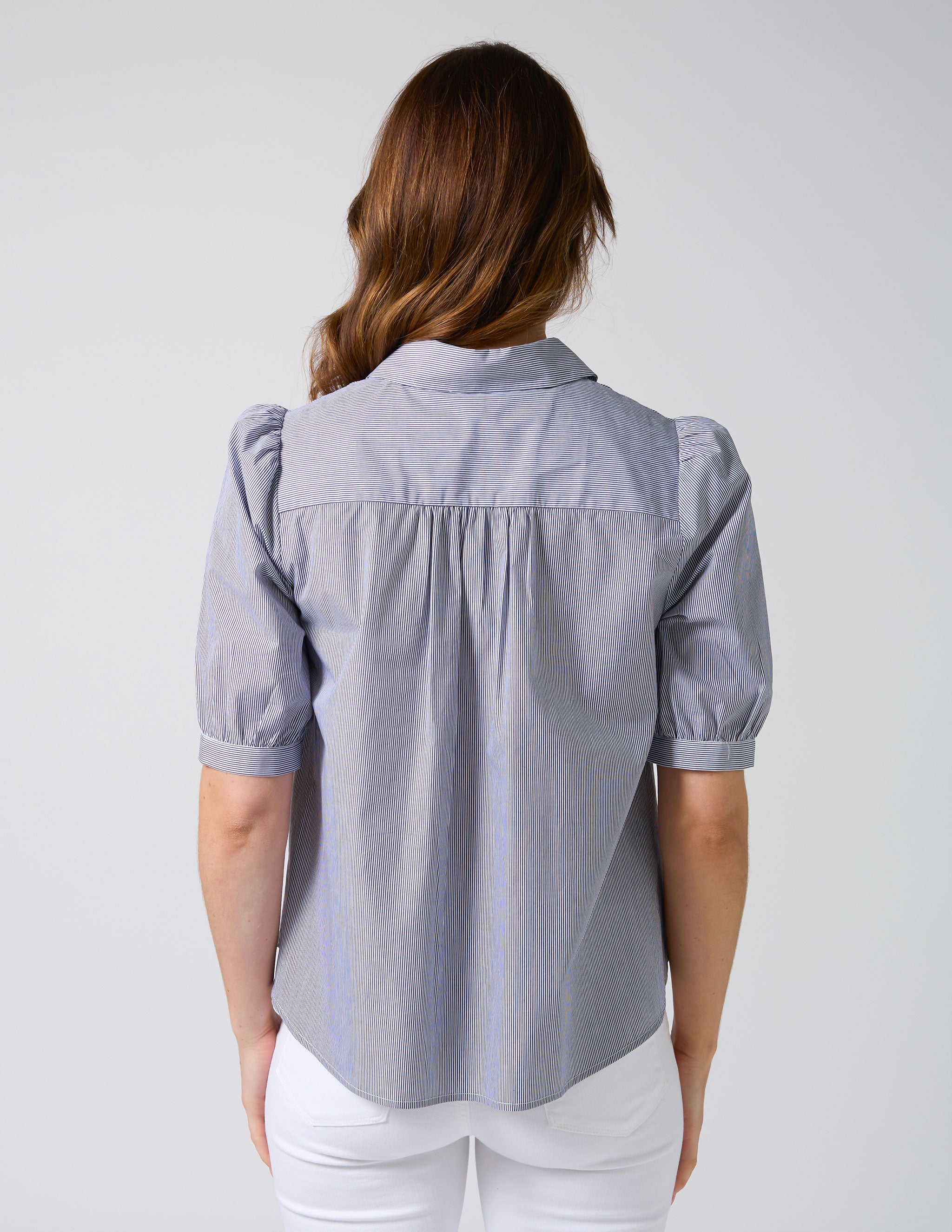 Asha Blouse - Navy White Stripe