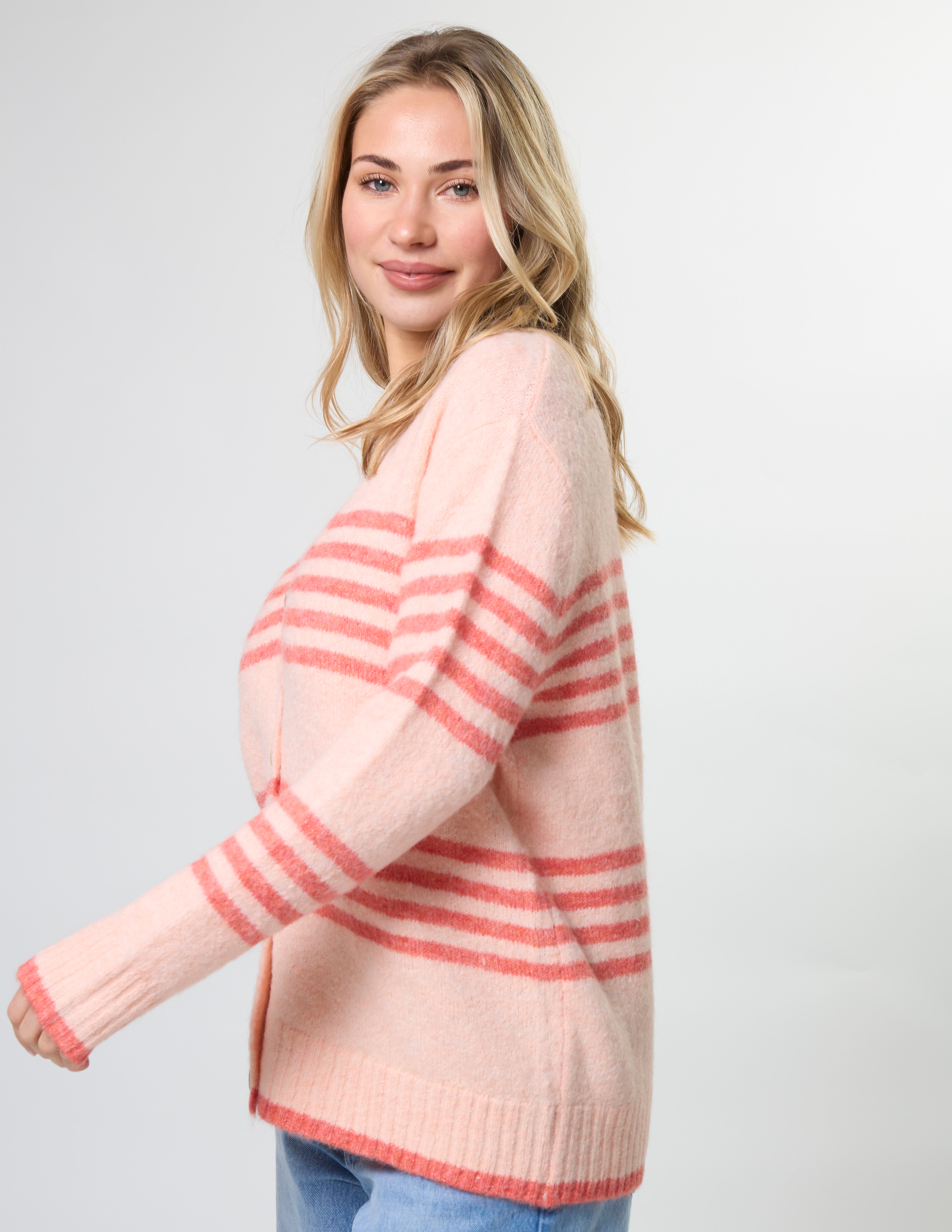 Stripe Cardigan - Desert Rose