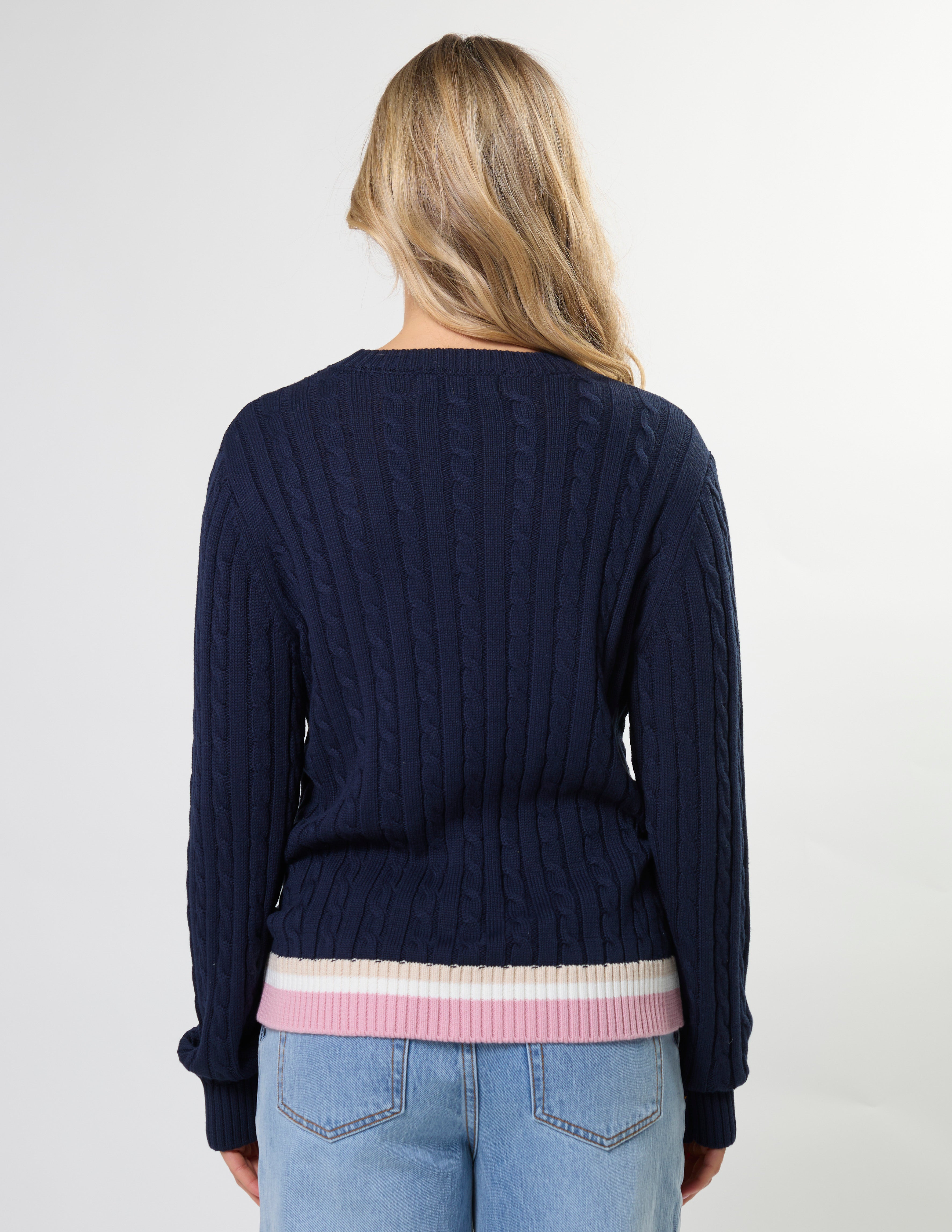 STELLA ESSENTIALS Navy Cardi - Navy and White