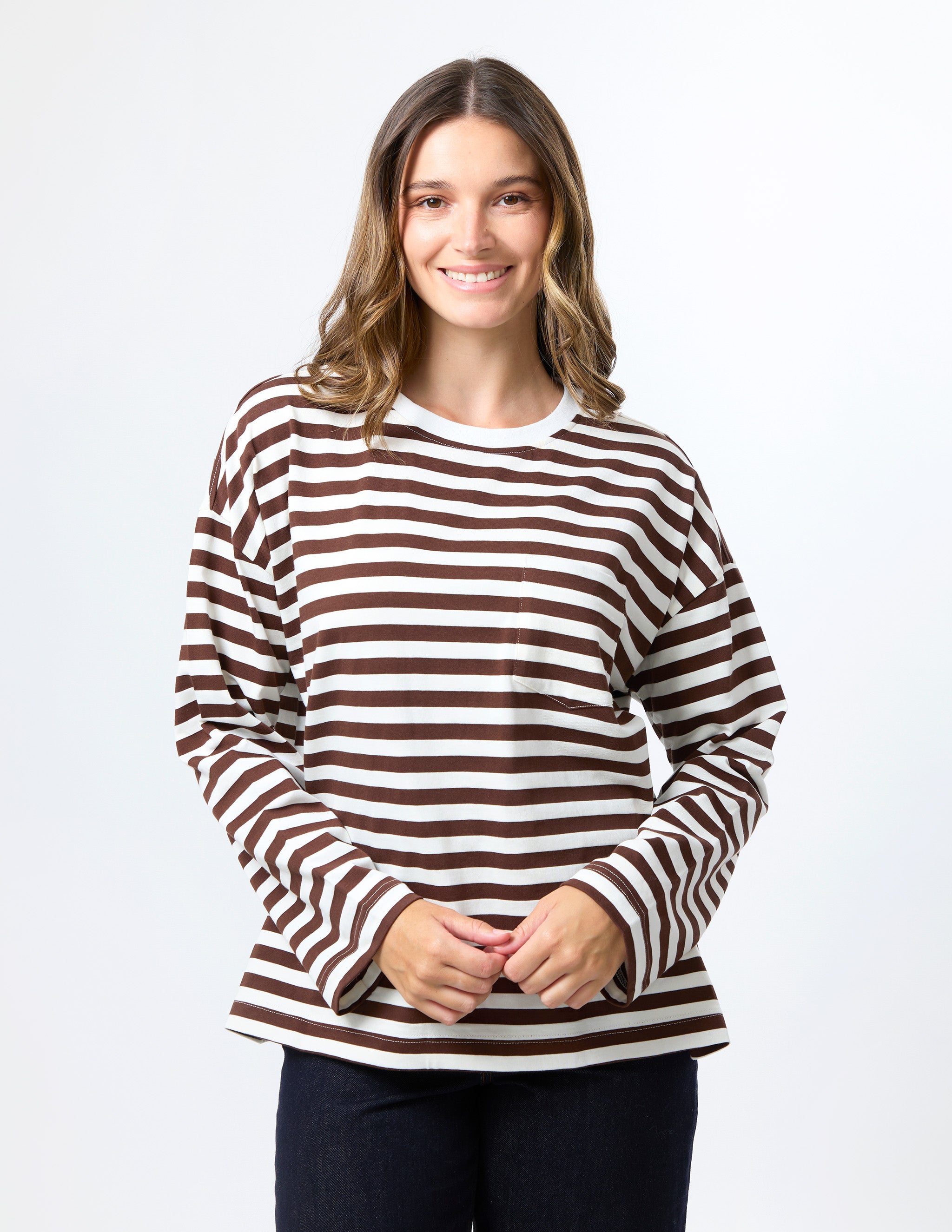 Drop Shoulder Tee - Choc Stripe