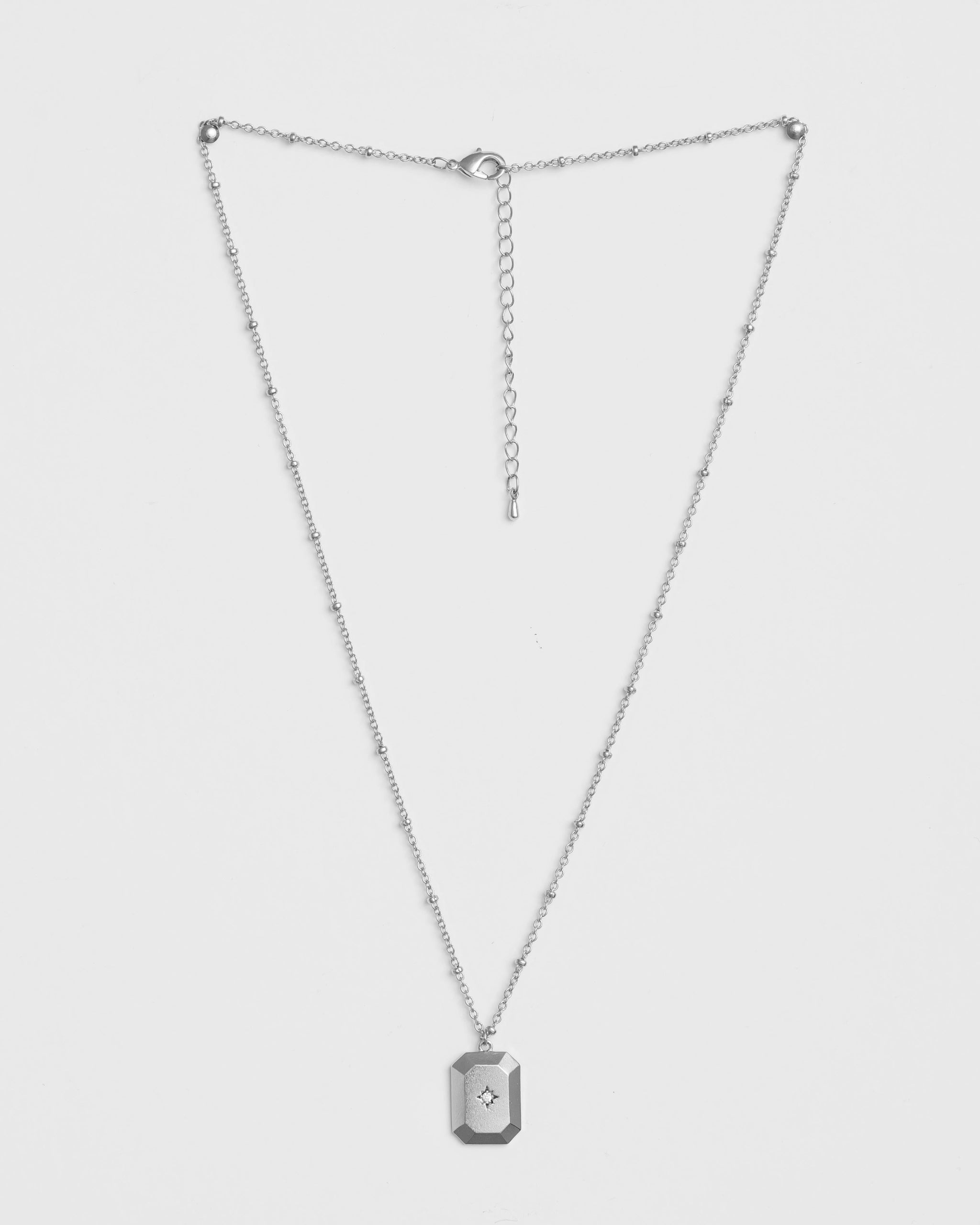 Necklace Silver Rect Pendant W/Star
