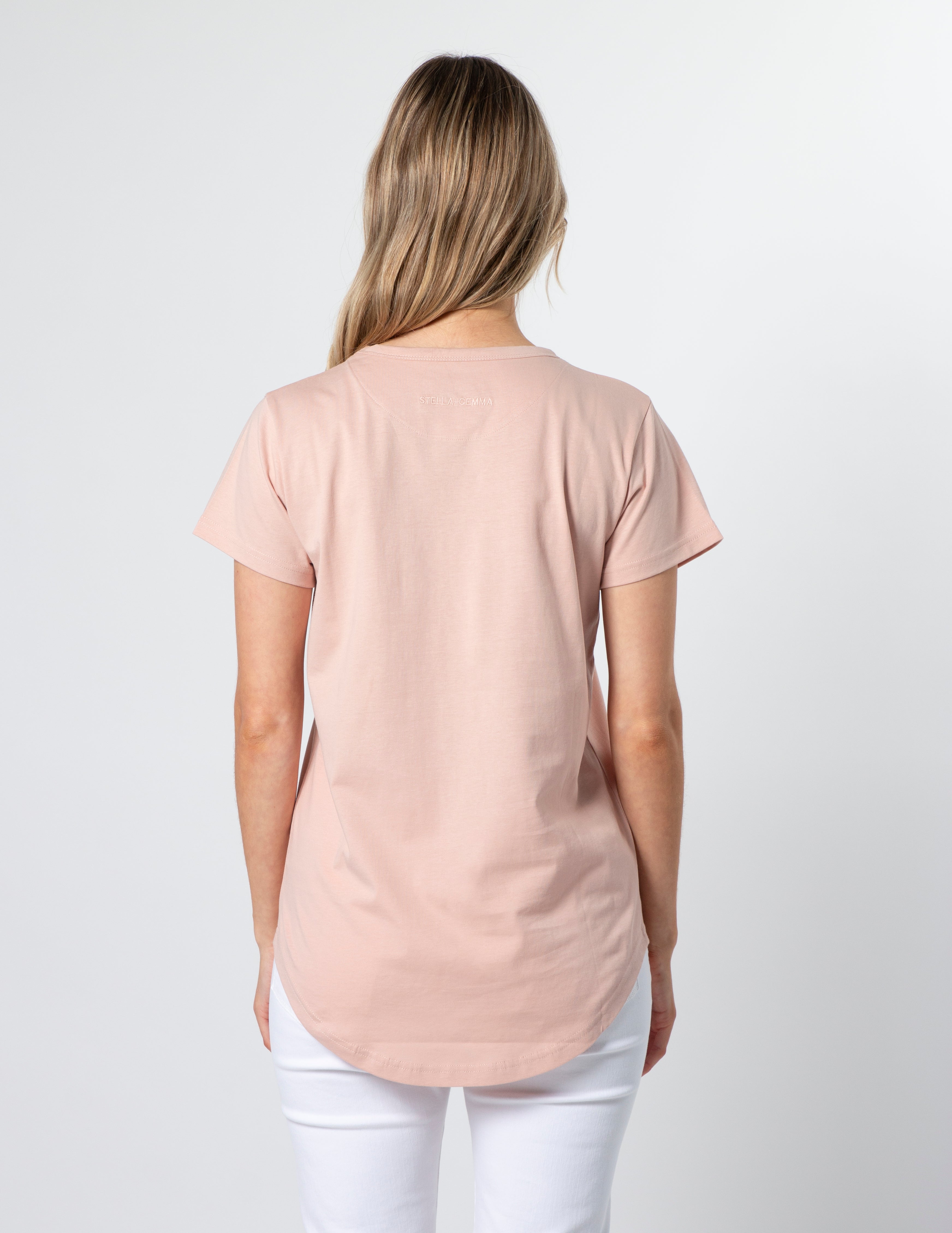 Relaxed fit crew neck t-shirt with a longer scoop back hemline
