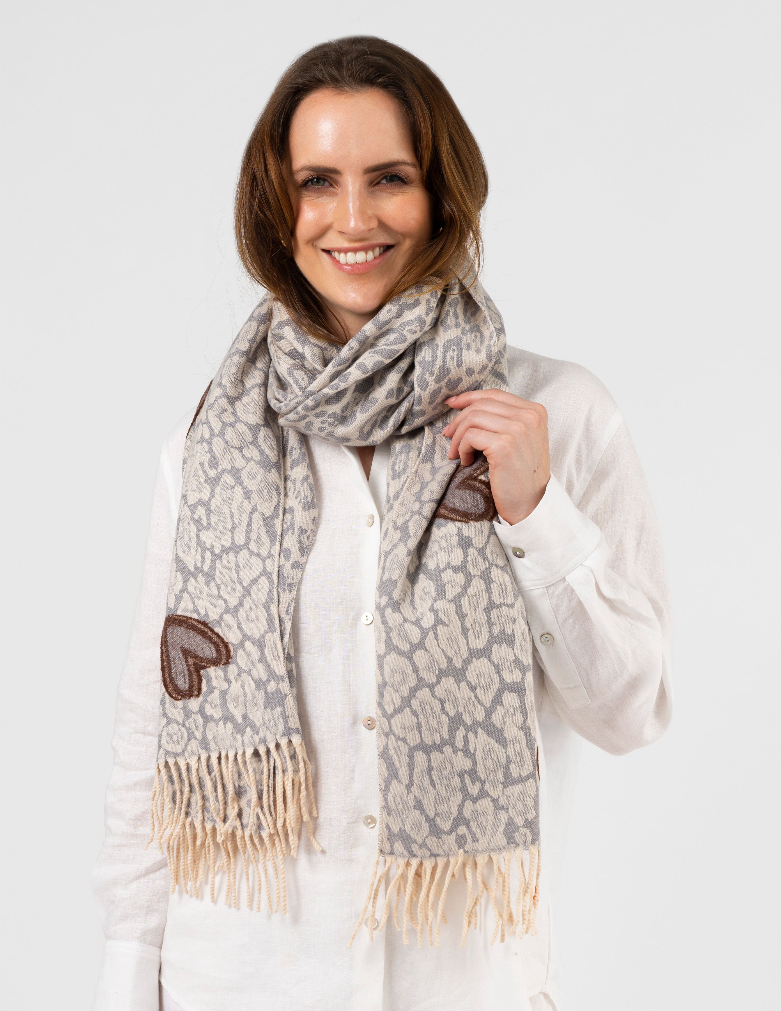 Scarf Hearts - Grey