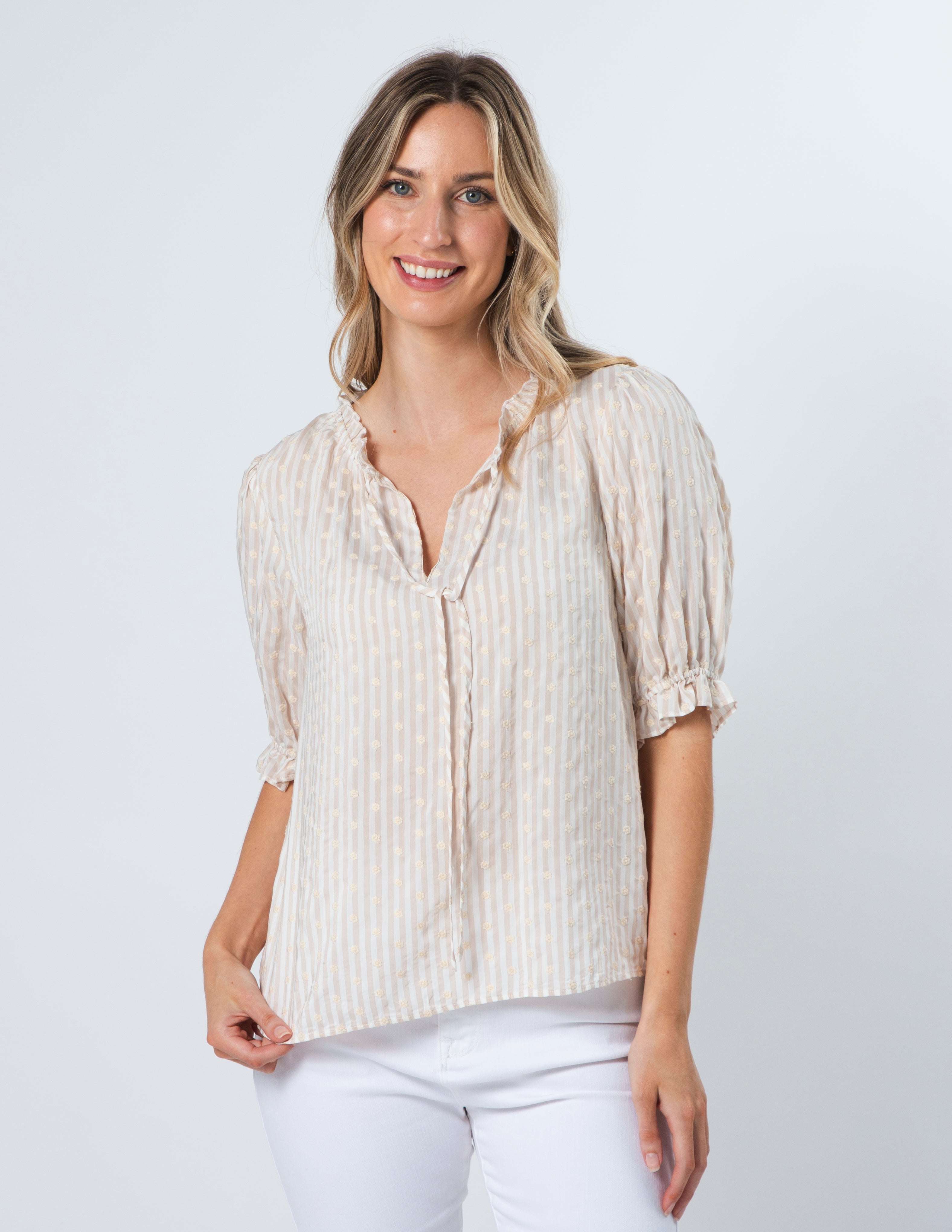 Alesha Top - Beige Ditsy