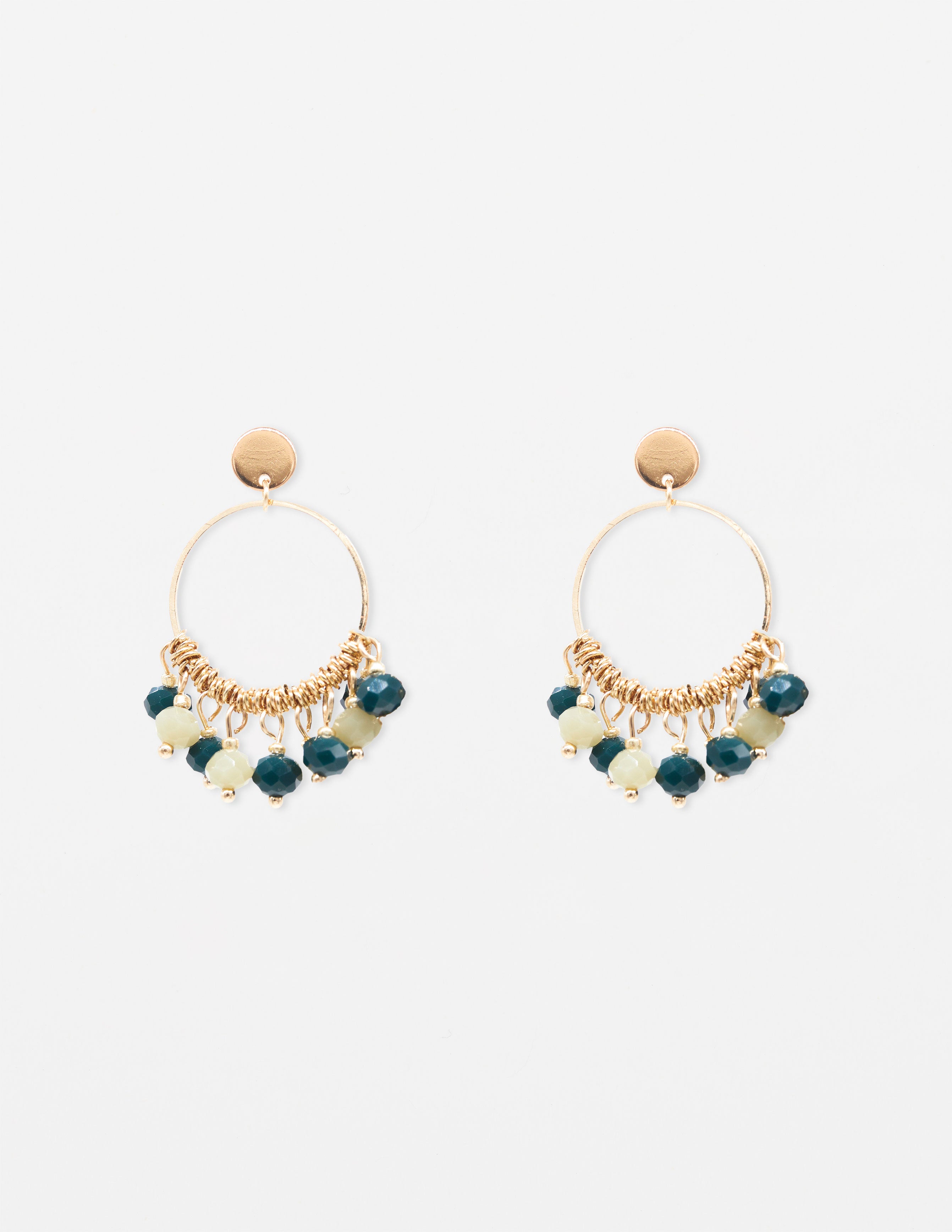Gold Hoop Emerald Beads Earrings